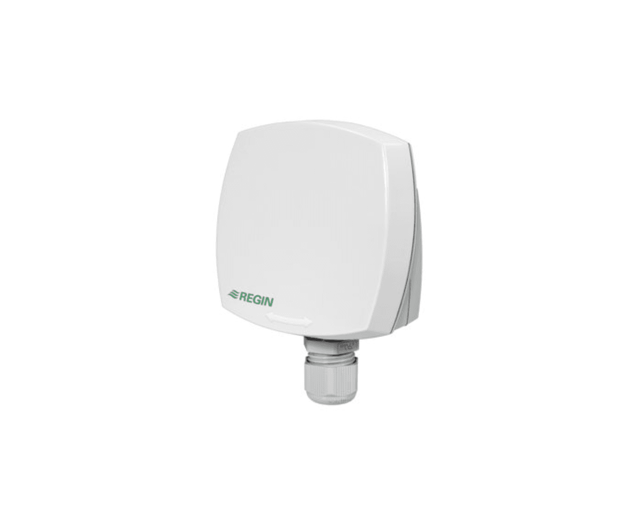 Regin PT1000 är en robust utegivare för lufttemperaturmätning. Den har ett skyddat IP65-hölje och stor monteringsplatta för enkel installation även på ojämna ytor. Kabelgenomföringen är utbytbar och plinten nås under ett vridbart lock. IP65-skyddet gör den lämplig för både utomhusbruk och inomhusbruk i mer krävande miljöer.